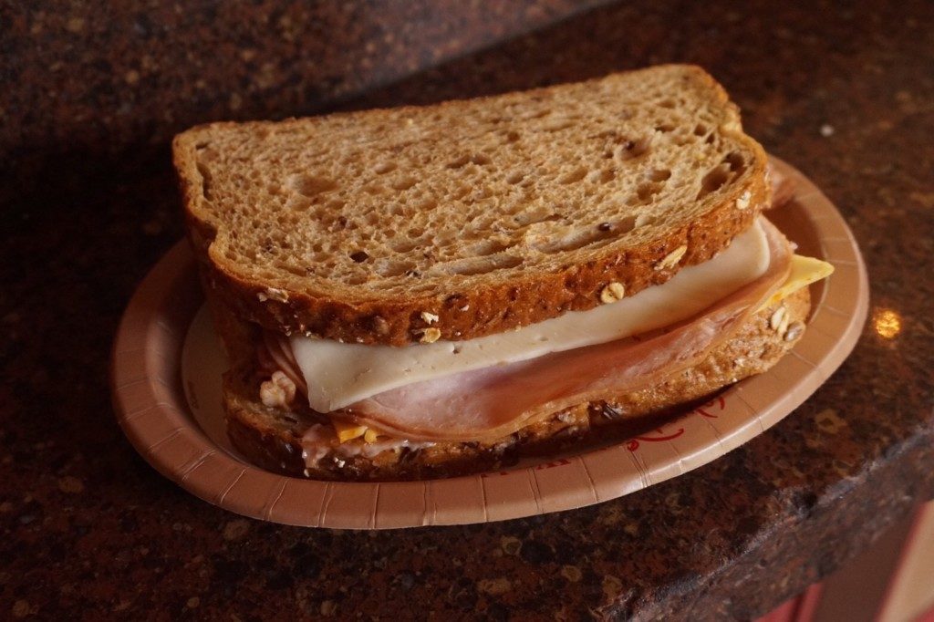 朝ごはんがまだだったので列に並びながら付近のお店で購入したサンドイッチをいただきます。