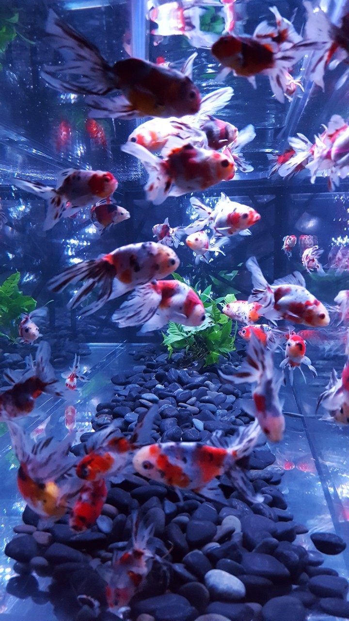 昔、夜市や祭りの金魚すくいで見た金魚とはデカさも種類も違う金魚が多くて戦慄。